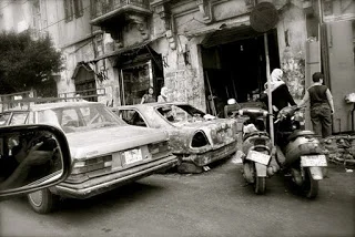 You can't even tell how many motorcycles used to be parked there... they're just a tangle of charred metal. I raise my camera. "Pssst! No no be careful if you take pictures here we'll get stopped and asked a LOT of questions." So I snapped a couple out the car window as I lowered it. There is yellow tape and army tanks everywhere, with stern looking soldiers sitting behind rotating cannons on top of them. There needs to be a better word for 'overkill' -- we're in tight little streets barely 2 Peugots-wide, that wind around in a completely unplanned urban yarnball of a neighborhood. We're in Bourj Abi Haydar in southern Beirut, completely Hizbollah-controlled territory. The yellow flags make it quite clear. On the way in he says "South of this points it's 100% Shia and 100% Hizbollah." I look around expecting to see guys toting AKs and wearing headscarves like Arabian bank-robbers. Not much changes. Hizbollah is not what many think it is – it's an extremely organized political party which happens to be militarized -- and extremely well-armed, at that. It outnumbers the army by a large margin. When shit hits the fan, most Lebanese know that they will have to look to Hizbollah for protection, not the military. The reason I don't see any weapons is that Hizbollah doesn't want you to know who is an actively in the militarized arm of their organization and so they are forbidden from openly carrying around weapons. But when anything happens, they come out of nowhere. After Tuesday's shoot-out, the area was locked-down within minutes by Hizbollah, with "young men carrying AKs in civilian clothing 'politely' denying the Lebanese army from entering the area". That's the influence they have. Once they had sorted out the argument and gotten the parties to agree to some sort of truce, they let the military in.