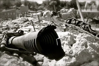 As he's telling me this we're passing by evidence of Tuesday's fire-fight. "Those cars and motorcycles are like that from being hit by a... how do you say in English... RPG?"